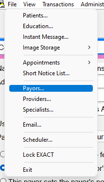 File > Payors: |