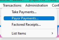 - Click Transactions > Payor Payments