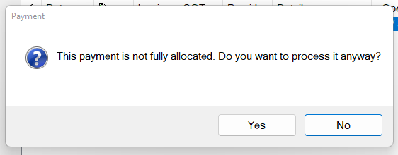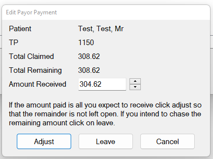 Note the instruction on this screen: If the amount paid is all you expect to receive click the Adjust button so that the Remainder is not left open. If you intend to chase the remaining amount, click the Leave button.