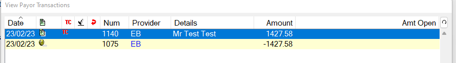 - The Amount will be processed once you click Yes, and the Advanced amount will show in the Payor $ sign, with an Open Amount against it: