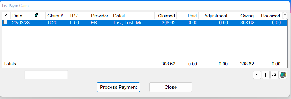 - Click the View Claims button to List the Payor Claims, from where you can optionally process selected payments: