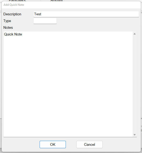 Type Note details and then click OK.